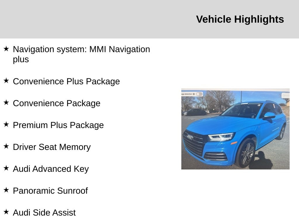Blue 2020 Audi Q5 e 55 Premium Plus quattro quattro 7-Speed Automatic S tronic 2.0L 4-Cylinder TFSI
