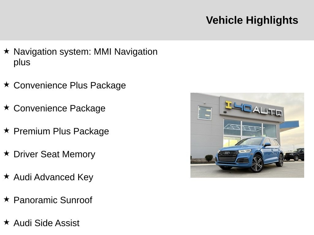 - Smart device integration: Audi smartphone interface (Apple CarPlay/Android Auto)
