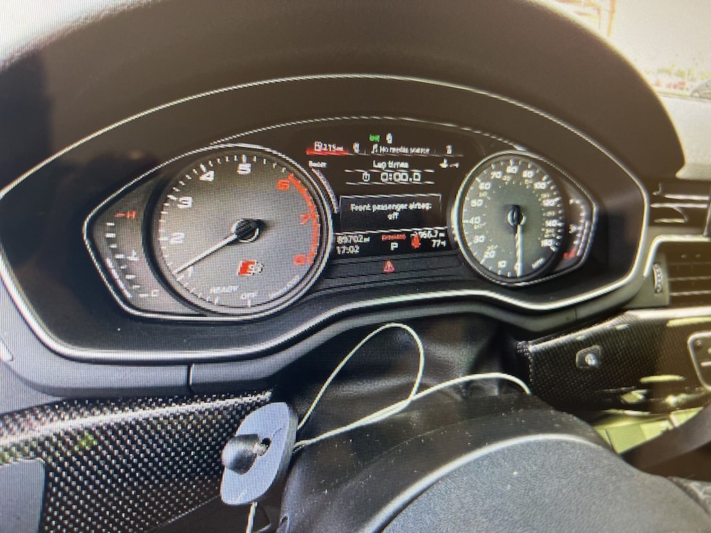 10 Speakers, 4-Wheel Disc Brakes, ABS brakes, Air Conditioning, Alloy wheels, AM/FM radio, Auto High-beam Headlights, Auto-dimming Rear-View mirror, Automatic temperature control, Brake assist, Bumpers: body-color, Compass, Delay-off headlights, Driver door bin, Driver vanity mirror, Dual front impact airbags, Dual front side impact airbags, Electronic Stability Control, Emergency communication system: Audi connect CARE, Exterior Parking Camera Rear, Four wheel independent suspension, Front anti-roll bar, Front Bucket Seats, Front Center Armrest, Front dual zone A/C, Front fog lights, Front reading lights, Garage door transmitter: HomeLink, Heated door mirrors, Heated Front S Sport Seats, Heated front seats, Illuminated entry, Knee airbag, Leather Shift Knob, Leather steering wheel, Leather/Dinamica Seating Surfaces, Low tire pressure warning, Occupant sensing airbag, Outside temperature display, Overhead airbag, Overhead console, Panic alarm, Passenger door bin, Passenger vanity mirror, Power door mirrors, Power driver seat, Power moonroof, Power passenger seat, Power steering, Power windows, Radio data system, Radio: Audi Sound System, Rain sensing wipers, Rear air conditioning, Rear anti-roll bar, Rear reading lights, Rear seat center armrest, Rear window defroster, Remote keyless entry, Speed control, Speed-sensing steering, Speed-Sensitive Wipers, Split folding rear seat, Spoiler, Steering wheel mounted audio controls, Tachometer, Telescoping steering wheel, Tilt steering wheel, Traction control, Trip computer, Turn signal indicator mirrors, Variably intermittent wipers, and Wheels: 19" 5-Double-Arm Design Bi-Color Finish. Recent Arrival! 21/30 City/Highway MPG