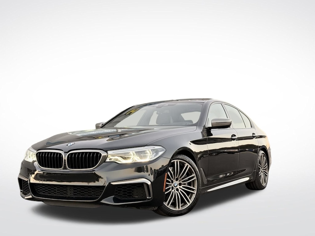 Black Sapphire Metallic 2018 BMW 5 Series M550i xDrive AWD 8-Speed Automatic 4.4L V8 Turbocharged DOHC 32V LEV3-ULEV125 456hp AWD, Black Leather.