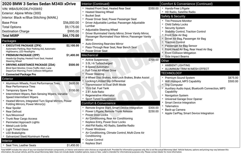 Alpine White 2020 BMW 3 Series M340i xDrive AWD 8-Speed Automatic 3.0L I6 AWD.