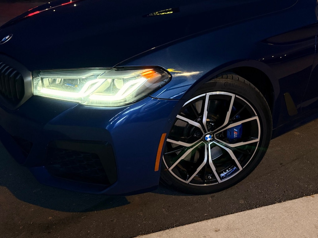 Blue Metallic 2021 BMW 5 Series M550i xDrive AWD 8-Speed Automatic Sport 4.4L V8 Twin Turbocharged AWD, Cognac Leather.