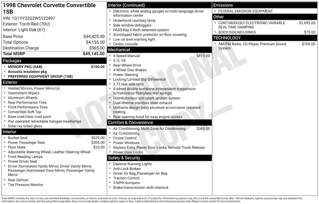 Torch Red 1998 Chevrolet Corvette RWD 6-Speed Manual 5.7L V8 SMPI 16V