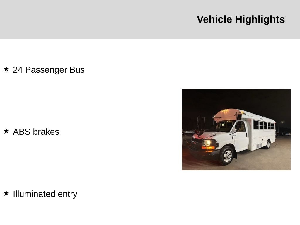 Base Equipment Group 1SA, 16" x 6.5" Steel Painted Gray Wheels, 2 Speakers, 4-Wheel Disc Brakes, 4.10 Rear Axle Ratio, ABS brakes, Air Conditioning, AM/FM radio, Driver door bin, Driver Only High-Back Reclining Bucket Seat, Driver Side Only Frontal Airbag, Driver/Passenger High-Back Reclining Bucket Seats, Dual front impact airbags, Dual Note Tone Horn, Dual Rear Wheels, Dual rear wheels, External Transmission Oil Cooler, Front anti-roll bar, Front Bucket Seats, Front wheel independent suspension, HVAC System Auxiliary Provisions, Illuminated entry, Manual Day/Night Inside Rear-View Mirror, Passenger cancellable airbag, Passenger door bin, Power steering, Reclining High-Back Bucket Seats, Reclining High-Back Bucket Seats w/Inboard Armrests, School Bus Chassis Equipment, Variably intermittent wipers, Vinyl Seat Trim, and Voltmeter. Recent Arrival!