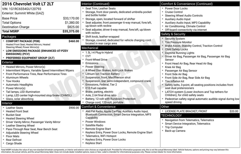 Summit White 2016 Chevrolet Volt LT FWD 1-Speed Automatic 1.5L DOHC