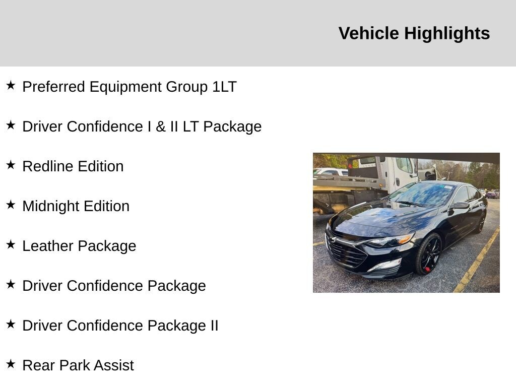 Driver Confidence I & II LT Package, Driver Confidence Package (Lane Change Alert w/Side Blind Zone Alert, Rear Cross Traffic Alert, and Rear Park Assist), Driver Confidence Package II (Automatic Emergency Braking, Following Distance Indicator, Forward Collision Alert, Front Pedestrian Braking, IntelliBeam Automatic High-Beam On/Off, and Lane Keep Assist w/Lane Departure Warning), Leather Package (3-Spoke Leather-Wrapped Steering Wheel, Heated Steering Wheel, Inside Rear-View Auto-Dimming Mirror, Leather-Appointed Seat Trim, and Leather-Wrapped Shift Knob), Preferred Equipment Group 1LT, Redline Edition (Black Outside Mirror Caps, Black w/Red Outline Nameplate Badge, Blacked-Out Grille, Front & Rear Black Bowties, and Wheels: 19" Black-Painted Alum w/Red Hash Marks), Black Leather, 17" Aluminum Wheels, 4-Wheel Disc Brakes, 6 Speakers, 6-Speaker Audio System Feature, 6-Way Manual Front Passenger Seat Adjuster, 8-Way Power Driver Seat Adjuster, ABS brakes, Air Conditioning, Alloy wheels, AM/FM radio: SiriusXM, Apple CarPlay/Android Auto, Automatic temperature control, Brake assist, Bumpers: body-color, Compass, Delay-off headlights, Driver door bin, Driver vanity mirror, Dual front impact airbags, Dual front side impact airbags, Electronic Stability Control, Emergency communication system: OnStar and Chevrolet connected services capable, Exterior Parking Camera Rear, Four wheel independent suspension, Front anti-roll bar, Front Bucket Seats, Front Center Armrest, Front dual zone A/C, Front reading lights, Fully automatic headlights, Heated door mirrors, Heated Driver & Front Passenger Seats, Heated front seats, Illuminated entry, Knee airbag, Low tire pressure warning, Occupant sensing airbag, Outside temperature display, Overhead airbag, Overhead console, Panic alarm, Passenger door bin, Passenger vanity mirror, Power door mirrors, Power Driver Lumbar Control Seat Adjuster, Power driver seat, Power steering, Power Tilt-Sliding Sunroof, Power windows, Premium audio system: Chevrolet Infotainment 3, Premium Cloth Seat Trim, Radio data system, Radio: Chevrolet Infotainment 3 System, Rear anti-roll bar, Rear reading lights, Rear seat center armrest, Rear side impact airbag, Rear window defroster, Remote keyless entry, Security system, SiriusXM Radio, Speed control, Split folding rear seat, Steering wheel mounted audio controls, Tachometer, Telescoping steering wheel, Tilt steering wheel, Traction control, Trip computer, Variably intermittent wipers, and Voltmeter. Recent Arrival! 29/36 City/Highway MPG