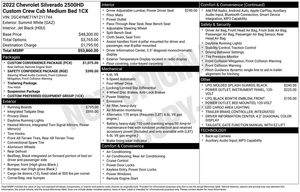 Custom Convenience Package (Electric Rear-Window Defogger, EZ Lift Power Lock & Release Tailgate, Integrated Trailer Brake Controller, LED Cargo Area Lighting, and Remote Vehicle Starter System), Preferred Equipment Group 1CX (170 Amp Alternator, 2-Speed Electronic Shift Transfer Case, 3.5" Diagonal Monochromatic Display DIC, Black Mirror Caps, Bluetooth® For Phone, Body Color Front Grille, Color-Keyed Carpeting Floor Covering, Deep-Tinted Glass, Electronic Cruise Control w/Set & Resume Speed, Front Rubberized Vinyl Floor Mats, Heated Vertical Trailering Mirrors, Locking Tailgate, Manual Tailgate Function w/No EZ Lift, Manual Tilt-Wheel Steering Column, Power Door Locks, Power Front Windows w/Driver Express Up/Down, Power Front Windows w/Passenger Express Down, Power Rear Windows w/Express Down, Rear 60/40 Folding Bench Seat (Folds Up), Rear Rubberized Vinyl Floor Mats, Remote Keyless Entry, and Standard Tailgate), Safety Confidence Package (4.2" Diagonal Color Display Driver Info Center, Automatic Emergency Braking, Forward Collision Alert, and Steering Wheel Audio Controls), Suspension Package, 6-Speed Automatic, 4WD, Black Cloth, 10-Way Power Driver Seat Adjuster w/Lumbar, 120-Volt Bed Mounted Power Outlet, 120-Volt Instrument Panel Power Outlet, 3.73 Rear Axle Ratio, 4-Wheel Disc Brakes, 4" Round Black Assist Steps (LPO), 6 Speakers, 6-Speaker Audio System, 720 Cold-Cranking Amps Heavy-Duty Battery, ABS brakes, Air Conditioning, Alloy wheels, AM/FM radio, Apple CarPlay/Android Auto, Black Molded Splash Guards (LPO), Brake assist, Cloth Seat Trim, Delay-off headlights, Driver door bin, Dual front impact airbags, Dual front side impact airbags, Electronic Stability Control, Front 40/20/40 Split-Bench Seats, Front anti-roll bar, Front Black Bowtie Emblem (LPO), Front Center Armrest w/Storage, Front reading lights, Front wheel independent suspension, Fully automatic headlights, Heated door mirrors, Illuminated entry, Low tire pressure warning, Multi-Flex Tailgate, Occupant sensing airbag, Outside temperature display, Overhead airbag, Overhead console, Panic alarm, Passenger door bin, Passenger vanity mirror, Power door mirrors, Power steering, Power windows, Premium audio system: Chevrolet Infotainment 3, Radio: Chevrolet Infotainment 3 System, Rear reading lights, Rear step bumper, Remote keyless entry, Speed control, Split folding rear seat, Tachometer, Tilt steering wheel, Traction control, Trip computer, Turn signal indicator mirrors, Variably intermittent wipers, Voltmeter, and Wheels: 20" 10-Spoke Machined Aluminum. Recent Arrival!