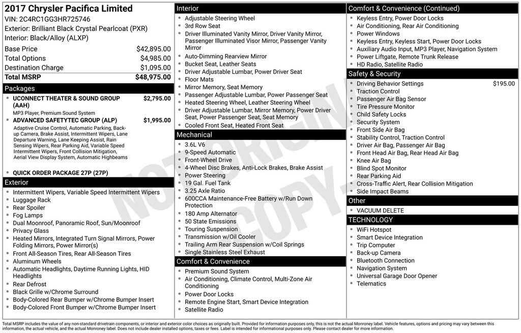 Brilliant Black Crystal Pearlcoat 2017 Chrysler Pacifica Limited FWD 9-Speed Automatic 3.6L V6 24V VVT
