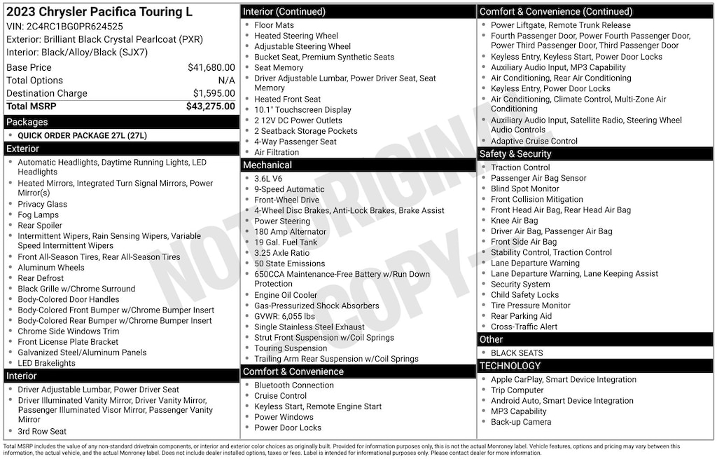 It just arrived on our lot this past week! Chrysler prioritized practicality, efficiency, and style by including: a power rear cargo door, power windows, and seat memory. It features a front-wheel-drive platform, an automatic transmission, and a refined 6 cylinder engine.