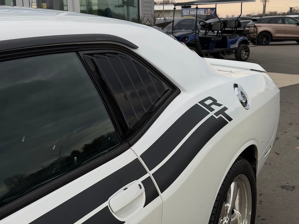 Electronics Convenience Group (Body Color Exterior Mirrors, Power Heated Fold-Away Mirrors, Security Alarm, Temperature & Compass Gauge, Tire Pressure Monitoring Display, and Universal Garage Door Opener), Quick Order Package 27M R/T Classic (20" x 8" Aluminum Wheels, 276 Watt Amplifier, 3.92 Rear Axle Ratio, Challenger Script Badge, Dual Black R/T Side Stripes, Functional Hood Scoop, Heated Front Seats, High-Intensity Discharge Headlamps, and Leather Trimmed Bucket Seats), Super Track Pak (Anti-Lock 4-Wheel Disc HD Brakes, Performance Steering w/Variable Displacement, and Sport Suspension), HEMI 5.7L V8 VVT, Power Sunroof, 18" x 7.5" Aluminum Wheels, 4-Wheel Disc Brakes, 6 Speakers, ABS brakes, Air Conditioning, Alloy wheels, AM/FM radio: SIRIUS, Anti-whiplash front head restraints, Audio Jack Input for Mobile Devices, Auto-dimming Rear-View mirror, Automatic temperature control, Brake assist, Bumpers: body-color, CD player, Cloth Low-Back Bucket Seats, Delay-off headlights, Driver door bin, Driver vanity mirror, Dual front impact airbags, Dual front side impact airbags, Electronic Stability Control, Four wheel independent suspension, Front anti-roll bar, Front Bucket Seats, Front Center Armrest, Front fog lights, Front reading lights, Fully automatic headlights, Illuminated entry, Leather Shift Knob, Low tire pressure warning, Overhead airbag, Overhead console, Panic alarm, Passenger door bin, Passenger vanity mirror, Power door mirrors, Power driver seat, Power steering, Power windows, Radio data system, Radio: Media Center 130 CD/MP3, Rear anti-roll bar, Rear seat center armrest, Rear window defroster, Remote keyless entry, SIRIUS Satellite Radio, Speed control, Speed-sensing steering, Split folding rear seat, Spoiler, Steering wheel mounted audio controls, Tachometer, Telescoping steering wheel, Tilt steering wheel, Traction control, Trip computer, and Variably intermittent wipers. Odometer is 34599 miles below market average!