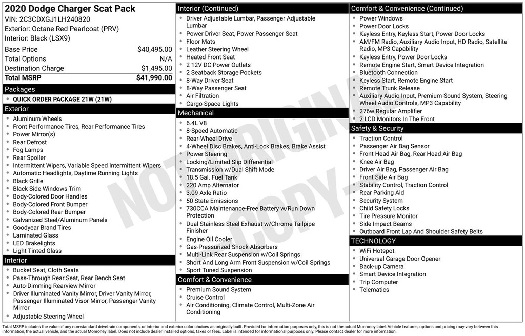 Octane Red Pearlcoat 2020 Dodge Charger R/T Scat Pack RWD 8-Speed Automatic SRT HEMI 6.4L V8 MDS Black Cloth.
