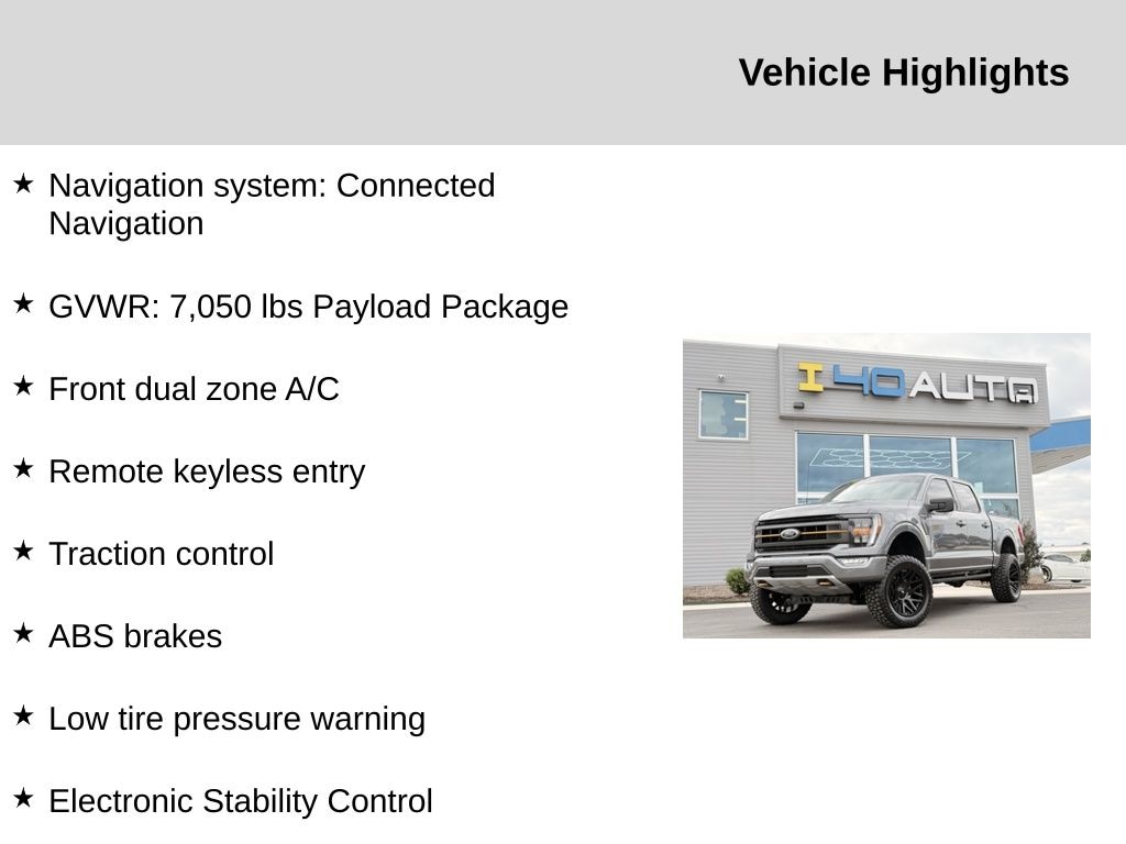 4WD, 4-Wheel Disc Brakes, ABS brakes, Air Conditioning, Auto High-beam Headlights, Auto Start-Stop Removal (DISC), Brake assist, Class IV Trailer Hitch Receiver, Compass, Delay-off headlights, Driver door bin, Dual front impact airbags, Dual front side impact airbags, Electronic Locking w/3.73 Axle Ratio, Electronic Stability Control, Emergency communication system: SYNC 4 911 Assist, Exterior Parking Camera Rear, Front anti-roll bar, Front reading lights, Front wheel independent suspension, Fully automatic headlights, Heated door mirrors, Illuminated entry, Integrated Trailer Brake Controller, Low tire pressure warning, Occupant sensing airbag, Outside temperature display, Overhead airbag, Overhead console, Panic alarm, Passenger door bin, Passenger vanity mirror, Power door mirrors, Power steering, Power windows, Radio data system, Rear step bumper, Remote keyless entry, Security system, Speed control, Speed-sensing steering, Split folding rear seat, Steering wheel mounted audio controls, SYNC 4 w/Enhanced Voice Recognition, Tachometer, Telescoping steering wheel, Tilt steering wheel, Traction control, Trip computer, Variably intermittent wipers, and Voltmeter. Recent Arrival!