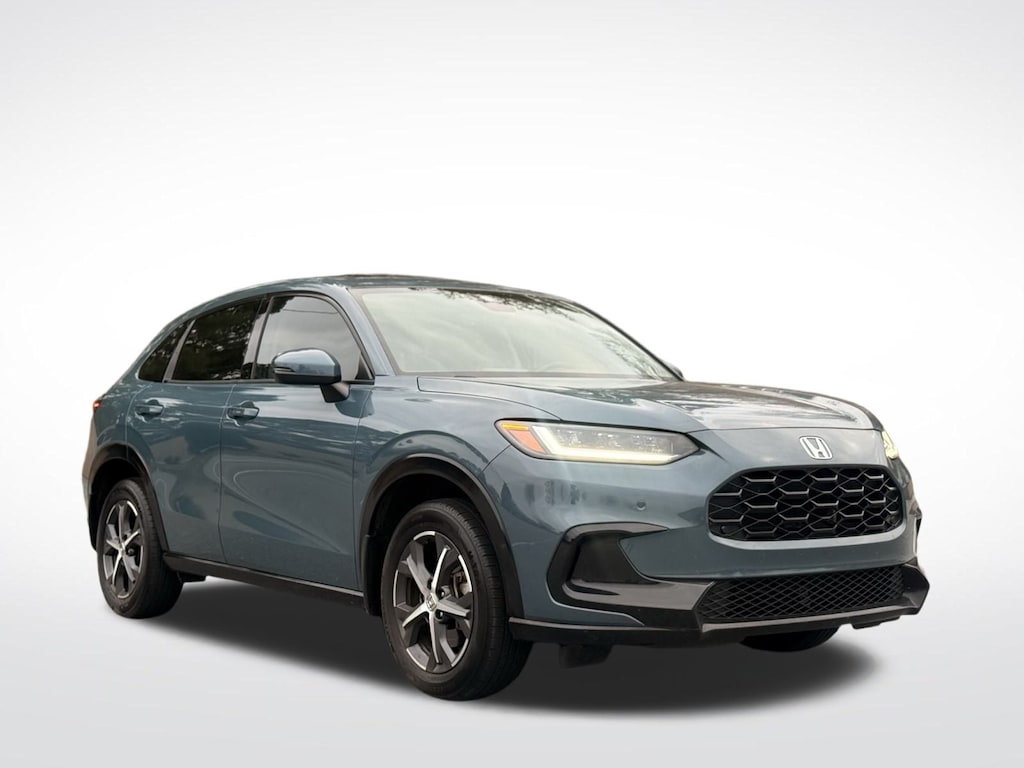 Blue 2023 Honda HR-V EX-L FWD CVT 2.0L I4 DOHC 16V i-VTEC 17" Machine-Finished Alloy Wheels, Adaptive Cruise Control: Adaptive Cruise Control (ACC) with Low-Speed Follow, Apple CarPlay/Android Auto, Auto-dimming Rear-View mirror, Blind Spot Information (BSI) System warning, Power moonroof, Radio: 180-Watt Audio System w/8 Speakers, SiriusXM.