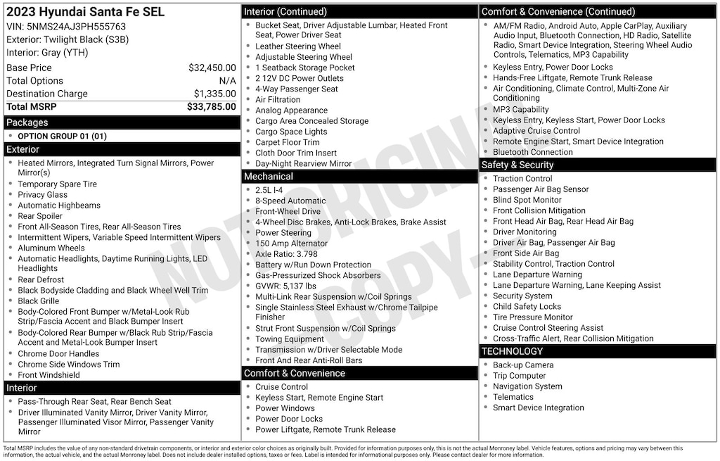 Twilight Black 2023 Hyundai Santa Fe SEL FWD 8-Speed Automatic with SHIFTRONIC 2.5L I4 Gray Cloth.