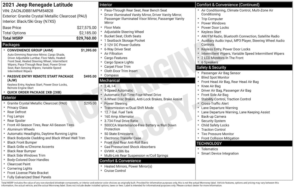Granite Crystal Metallic Clearcoat 2021 Jeep Renegade Latitude 4WD 9-Speed 948TE Automatic 2.4L I4