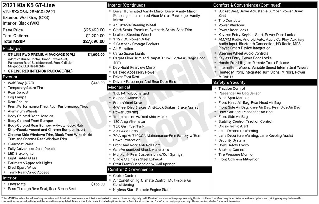 Wolf Gray 2021 Kia K5 GT-Line FWD 8-Speed Automatic 1.6L I4 DGI