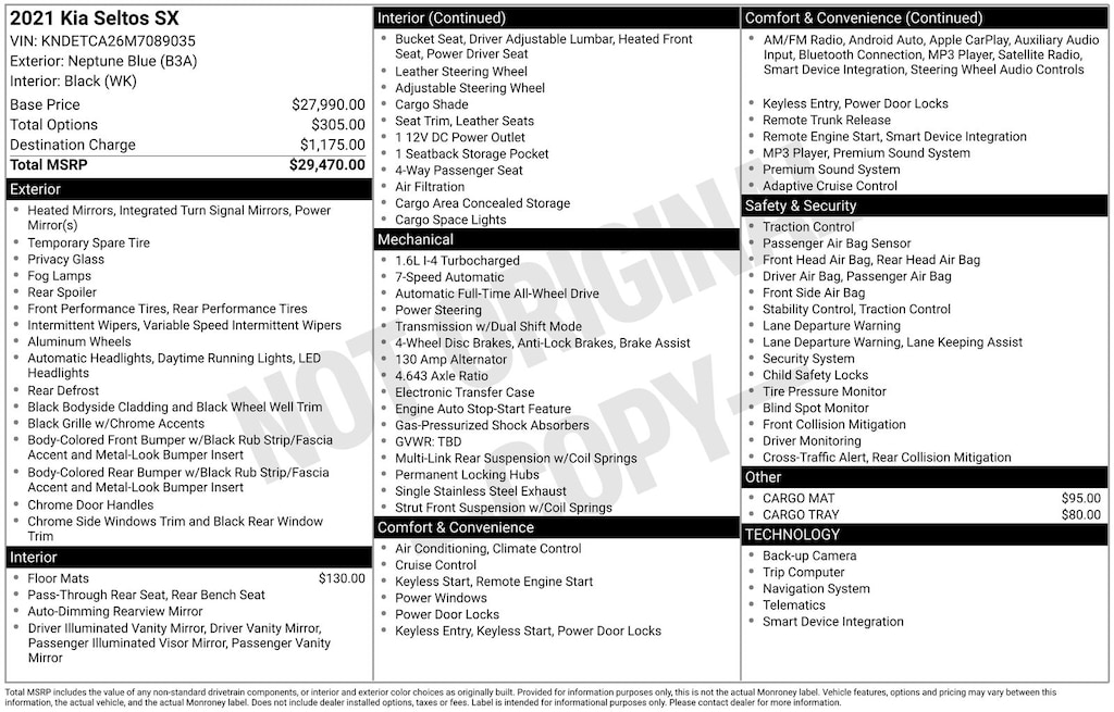 Neptune Blue 2021 Kia Seltos SX AWD 7-Speed Automatic I4