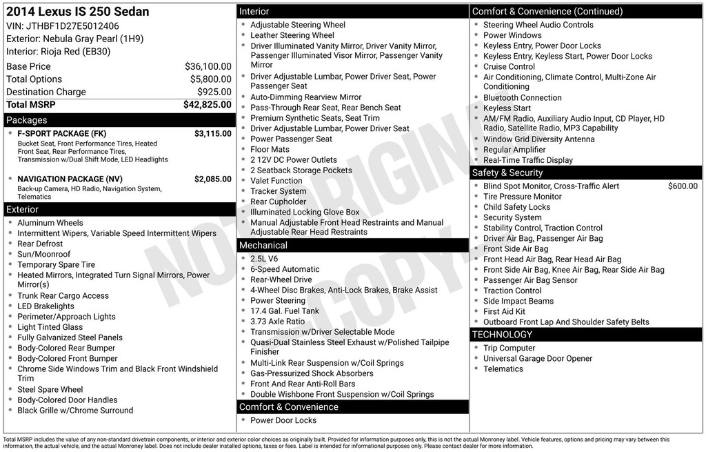 This IS 250 is meticulously equipped with a host of premium features, including: