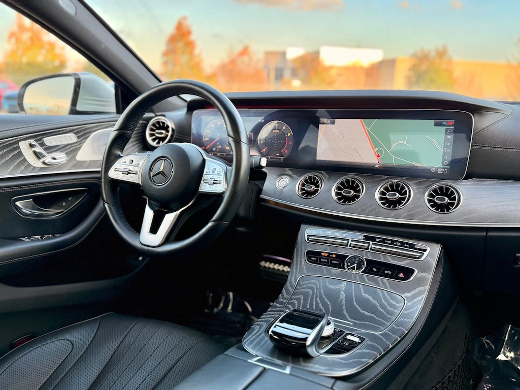 AMG® Line Exterior Package Code (19" AMG® Twin 5-Spoke Wheels), AMG® Line, AMG® Line Interior Package Code (AMG® Floor Mats, Black Headliner, Multi-Function Sports Steering Wheel w/Flat Bottom, and Round Multifunction Steering Wheel), Navigation system: COMAND®, 13 Speakers, 4-Wheel Disc Brakes, ABS brakes, Air Conditioning, Alloy wheels, AM/FM radio: SiriusXM, Apple CarPlay®/Android Auto®, Auto tilt-away steering wheel, Auto-dimming door mirrors, Auto-dimming Rear-View mirror, Automatic temperature control, Brake assist, Bumpers: body-color, Child-Seat-Sensing Airbag, Compass, Delay-off headlights, Driver door bin, Driver vanity mirror, Dual front impact airbags, Dual front side impact airbags, Electronic Stability Control, Emergency communication system: eCall Emergency System, Exterior Parking Camera Rear, Four wheel independent suspension, Front anti-roll bar, Front Bucket Seats, Front Center Armrest, Front dual zone A/C, Front reading lights, Fully automatic headlights, Garage door transmitter: Homelink, Genuine wood dashboard insert, Genuine wood door panel insert, Headlight cleaning, Heated door mirrors, Heated front seats, Heated Power Front Bucket Seats, Illuminated entry, Knee airbag, Leather Upholstery, Low tire pressure warning, Memory seat, Occupant sensing airbag, Outside temperature display, Overhead airbag, Overhead console, Panic alarm, Passenger door bin, Passenger vanity mirror, Power door mirrors, Power driver seat, Power moonroof, Power passenger seat, Power steering, Power windows, Premium audio system: COMAND®, Radio data system, Radio: COMAND® Navigation System, Rain sensing wipers, Rear anti-roll bar, Rear reading lights, Rear seat center armrest, Rear window defroster, Remote keyless entry, Security system, Speed control, Speed-sensing steering, Split folding rear seat, Steering wheel memory, Steering wheel mounted audio controls, Tachometer, Telescoping steering wheel, Tilt steering wheel, Traction control, Trip computer, Turn signal indicator mirrors, Variably intermittent wipers, and Wheels: 19" Twin Multi-Spoke. 23/30 City/Highway MPG