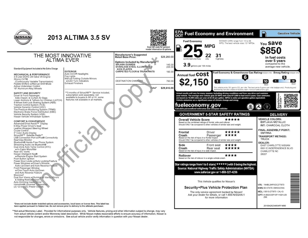 Java Metallic 2013 Nissan Altima 3.5 SV FWD CVT with Xtronic 3.5L V6 DOHC 24V CVT with Xtronic.