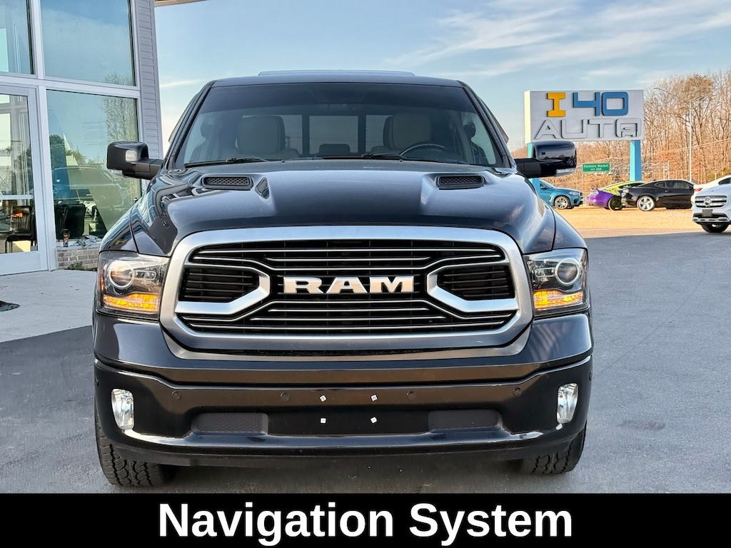 Limited Tungsten Edition w/Indigo/Frost (Bi-Function Halogen Projector Headlamps, Body Color Door Handles, Body Color Exterior Mirrors, Body Color Fender Flares, Body Color Painted Front Steel Bumper, Body Color Ram Tailgate Nameplate, Body Color Running Boards, Platinum Bodyside Molding, Platinum Exterior Badging - Trucks, Platinum RAM Grille, Rotary Shifter-Black w/Silver Stripe, Satin Carbon Wheel Center Cap, Sport Performance Hood, Sport Tail Lamps, Suede Headliner, and Wheels: 20" x 9" Satin Carbon/Mineral Gray), Quick Order Package 26V Limited (115V Auxiliary Power Outlet, 4-Corner Air Suspension, Black Closeout Trim, Body Color Front Fascia, Body Color Rear Bumper w/Step Pads, Bucket Seats, Center Hub, Chrome Bodyside Molding, Chrome Ram Badge, Folding Flat Load Floor Storage, Heated Front Seats, Heated Second Row Seats, Heated Steering Wheel, High Back Seats, Laramie Limited Cluster, Laramie Limited Group, Laramie Limited Leather Bucket Seats, Leather Wrapped Grab Handle, Limited Tailgate Applique 4x4, Luxury Door Trim Panel, Luxury Front & Rear Floor Mats, Power 10-Way Memory Driver & 6-Way Passenger Seats, Ram 1500 Badge, Rear 60/40 Split Folding Seat, Rear Window Defroster, Steering Wheel Mounted Audio Controls, Ventilated Front Seats, Wheel to Wheel Side Steps, Wheels: 20" x 9" Painted Aluminum Chrome Insert, and Wood/Leather Wrapped Steering Wheel), 10 Speakers, 3.21 Rear Axle Ratio, 4 Adjustable Cargo Tie-Down Hooks, 4-Wheel Disc Brakes, ABS brakes, Active Grille Shutters, Adjustable pedals, Air Conditioning, Alloy wheels, AM/FM radio: SiriusXM, Apple CarPlay/Android Auto, Audio memory, Auto High-beam Headlights, Auto-dimming door mirrors, Auto-dimming Rear-View mirror, Automatic temperature control, Bed Cargo Divider/Extender, Brake assist, Class IV Receiver Hitch, Compass, Delay-off headlights, Driver door bin, Driver vanity mirror, Dual front impact airbags, Dual front side impact airbags, Electronic Shift, Electronic Stability Control, Electronically Controlled Throttle, Emergency communication system: SiriusXM Guardian, Engine Oil Heat Exchanger, Front anti-roll bar, Front Bucket Seats, Front Center Armrest w/Storage, Front dual zone A/C, Front fog lights, Front reading lights, Front wheel independent suspension, Fully automatic headlights, Garage door transmitter, Genuine wood dashboard insert, Genuine wood door panel insert, Heated door mirrors, Heated front seats, Heated rear seats, Heated steering wheel, Heavy-Duty Engine Cooling, Hemi Badge, Illuminated entry, Leather Shift Knob, Leather steering wheel, Low tire pressure warning, Memory seat, Navigation System, Occupant sensing airbag, Outside temperature display, Overhead airbag, Overhead console, Panic alarm, ParkView Rear Back-Up Camera, Passenger door bin, Passenger vanity mirror, Pedal memory, Power door mirrors, Power driver seat, Power Lumbar Adjust, Power passenger seat, Power steering, Power Sunroof, Power windows, Premium Filigree Leather Seats, Radio data system, Radio: Uconnect 4C Nav w/8.4" Display, Rain sensing wipers, RamBox Cargo Management System, Rear anti-roll bar, Rear seat center armrest, Rear step bumper, Remote keyless entry, Security system, Speed control, Split folding rear seat, Steering wheel mounted audio controls, Tachometer, Tilt steering wheel, Tip Start, Traction control, Trip computer, Turn signal indicator mirrors, Variably intermittent wipers, Ventilated front seats, Voltmeter, and Wheels: 20" x 9" Aluminum Polish/Brown Insert. Recent Arrival!