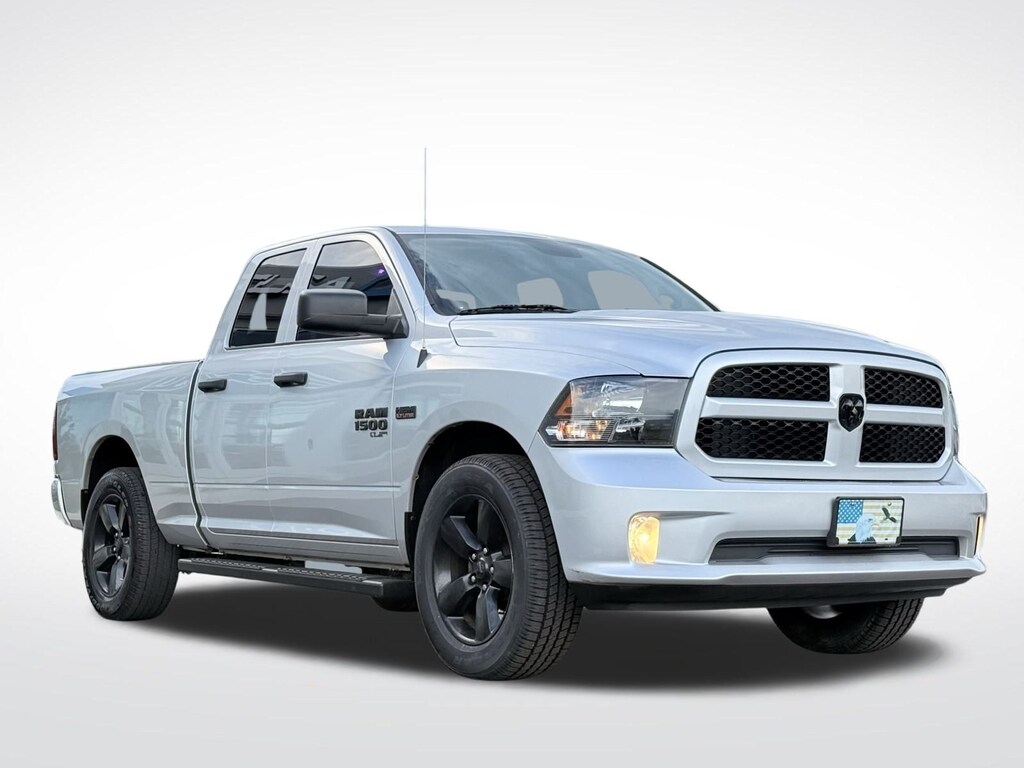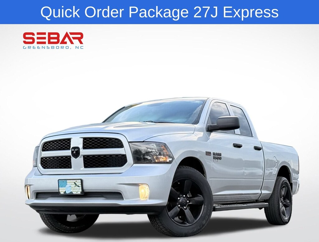 Express Black Accent Package (4x4 Flat Black Badge, Black Exterior Truck Badging, Black Headlamp Bezels, Black RAM Head Tailgate Badge, Body Color Grille w/Black RAM's Head, Semi-Gloss Black Hub, and Wheels: 20" x 8" Semi-Gloss Black Aluminum), Express Value Package (1-Year SiriusXM Radio Service, 5.0" Touchscreen Display, Audio Jack Input for Mobile Devices, Carpet Floor Covering, Center Hub, Cloth 40/20/40 Bench Seat, For More Info, Call 800-643-2112, Front Floor Mats, GPS Antenna Input, Integrated Voice Command w/Bluetooth, Manual Adjust Seats, Media Hub (USB, AUX), No Satellite Coverage w/AK/HI/PR/VI/GU, Overhead Console, Radio: Uconnect 3 w/5" Display, Rear Floor Mats, Rear Folding Seat, Rear View Day/Night Mirror, Remote Keyless Entry w/All-Secure, Remote USB Port, SiriusXM Satellite Radio, Temperature & Compass Gauge, and Wheels: 20" x 8" Aluminum Chrome Clad), Quick Order Package 27J Express (17" x 7" Aluminum Wheels, Body Color Front Fascia, Body Color Grille, Body Color Rear Bumper w/Step Pads, Delete Class IV Receiver Hitch, Delete Spray In Bedliner, Front Fog Lamps, and Ram 1500 Express), 17" x 7" Steel Wheels, 3.21 Rear Axle Ratio, 4-Wheel Disc Brakes, 6 Speakers, ABS brakes, Active Grille Shutters, Air Conditioning, AM/FM radio, Auto-dimming Rear-View mirror, Brake assist, Delay-off headlights, Driver door bin, Dual front impact airbags, Dual front side impact airbags, Electronic Shift, Electronic Stability Control, Exterior Mirrors w/Heating Element, Front anti-roll bar, Front Center Armrest, Front wheel independent suspension, Fully automatic headlights, Heated door mirrors, Heavy Duty Vinyl 40/20/40 Split Bench Seat, Low tire pressure warning, Manufacturer's Statement of Origin, Occupant sensing airbag, Overhead airbag, ParkView Rear Back-Up Camera, Passenger door bin, Power door mirrors, Power steering, Power windows, Radio data system, Radio: 3.0, Rear anti-roll bar, Rear step bumper, Speed control, Tachometer, Tilt steering wheel, Tip Start, Traction control, Variably intermittent wipers, and Voltmeter. Odometer is 16678 miles below market average!