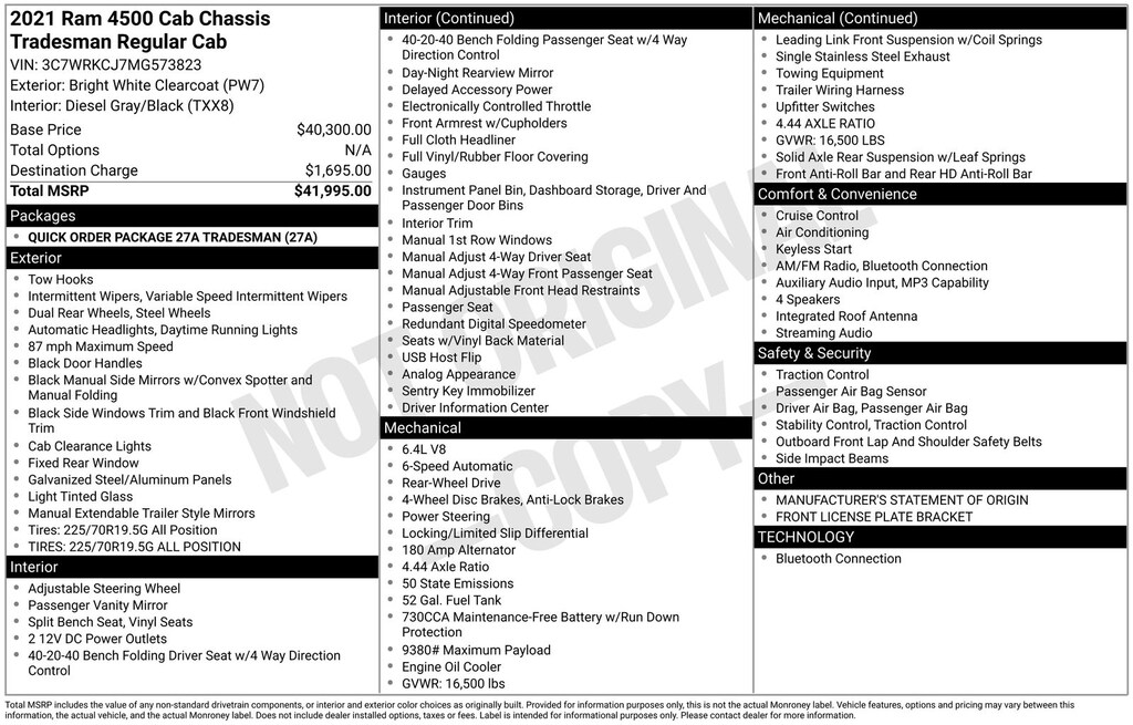 Bright White Clearcoat 2021 Ram 4500HD Tradesman RWD Aisin 6-Speed Automatic 6.4L V8