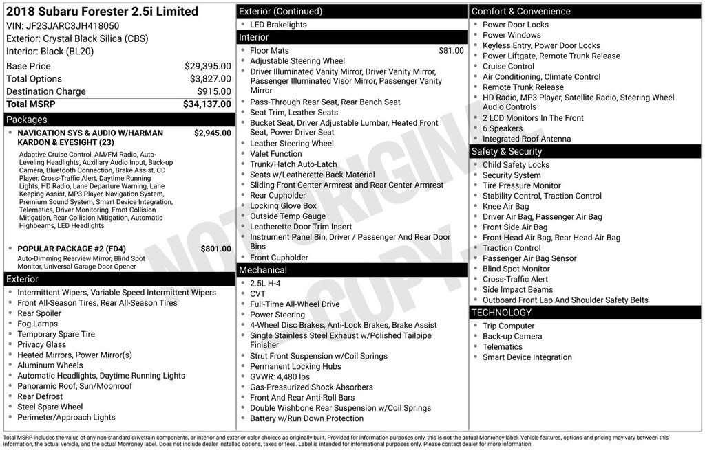 Generously equipped and boasting stylish interior comfort, this vehicle challenges all competitors, regardless of price and class! Subaru infused the interior with top shelf amenities, such as: leather upholstery, a power rear cargo door, and air conditioning. Under the hood you'll find a 4 cylinder engine with more than 170 horsepower, and for added security, dynamic Stability Control supplements the drivetrain.