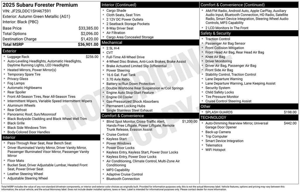 - Emergency communication system: MySubaru Safety (3-year free trial)