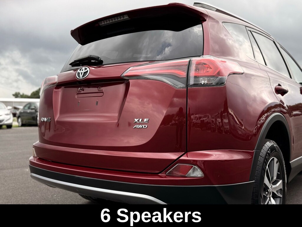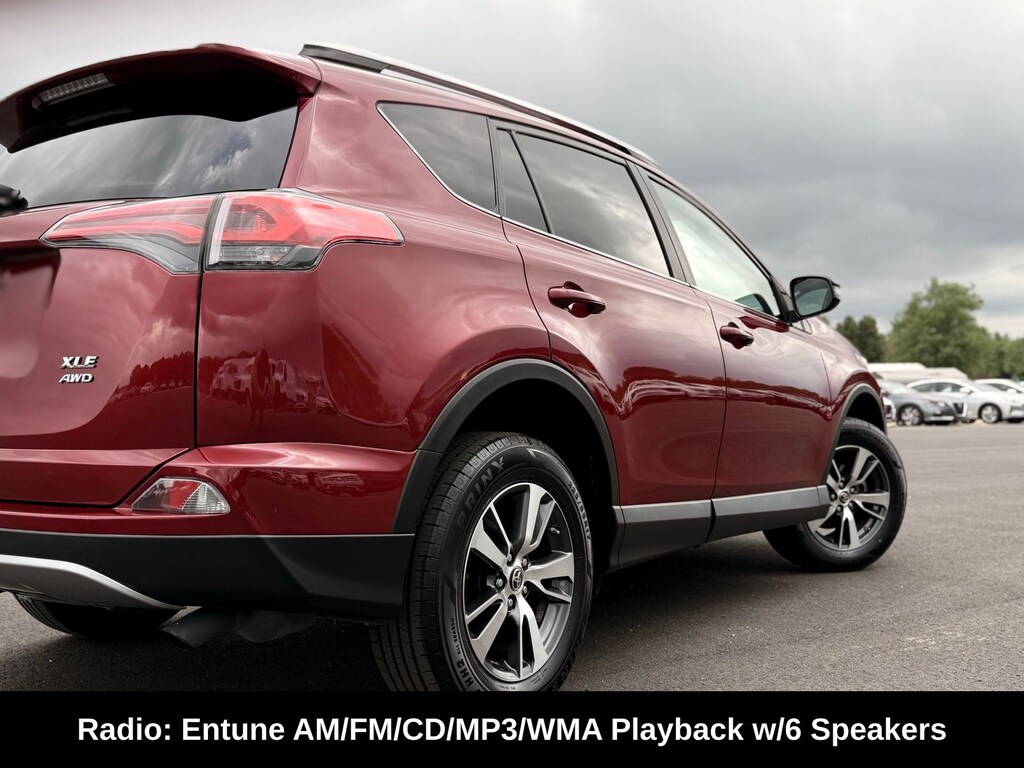 Red 2018 Toyota RAV4 XLE AWD 6-Speed Automatic 2.5L 4-Cylinder DOHC Dual VVT-i AWD, Ash Cloth, 4-Wheel Disc Brakes, 4.071 Axle Ratio, 6 Speakers, ABS brakes, Air Conditioning, Alloy wheels, AM/FM radio, Auto High-beam Headlights, Automatic temperature control, Brake assist, Bumpers: body-color, CD player, Driver door bin, Driver vanity mirror, Dual front impact airbags, Dual front side impact airbags, Electronic Stability Control, Exterior Parking Camera Rear, Fabric Seat Trim, Four wheel independent suspension, Front anti-roll bar, Front Bucket Seats, Front Center Armrest, Front dual zone A/C, Front fog lights, Front reading lights, Front Sport Seats, Fully automatic headlights, Heated door mirrors, Illuminated entry, Knee airbag, Leather steering wheel, Low tire pressure warning, Occupant sensing airbag, Outside temperature display, Overhead airbag, Overhead console, Panic alarm, Passenger door bin, Passenger vanity mirror, Power door mirrors, Power moonroof, Power steering, Power windows, Radio data system, Radio: Entune AM/FM/CD/MP3/WMA Playback w/6 Speakers, Rear anti-roll bar, Rear seat center armrest, Rear window defroster, Rear window wiper, Remote keyless entry, Speed control, Speed-sensing steering, Spoiler, Steering wheel mounted audio controls, Tachometer, Telescoping steering wheel, Tilt steering wheel, Traction control, Trip computer, Turn signal indicator mirrors, Variably intermittent wipers, Wheels: 17" 5-Spoke Superchrome Alloy.