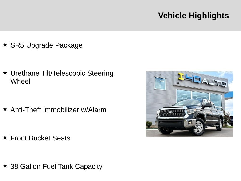 This has been the best truck I have ever driven. 2021 Toyota Tundra SR5 Crew Cab ( Trail Edition package) color is Army Green. The suspension comfortably dampens most bumps and pot holes. The 4 wheel drive works great in the snow. The steering is very lite and easy to turn. In tow/haul, The 5.7L and 6 speed trans pulls my 6000lb trailer with ease. It has a tight turning radius, so backing up my trailer is easy. The interior controls are all easy to reach and intuitive to use. The seats are cloth and comfortable. The interior room in my crew cab is massive. The back seats fold flat to the back wall, leaving a lot of room for hauling things out of the weather. The bed is 5’5” with a dampened tailgate . I have easily hauled plywood and lumber with the tailgate down. I also haul kayaks sticking out out of the bed without a problem. My truck has Toyota safety sense, with that is all of the modern safety features you can imagine. All features, gages and controls are working perfectly. The engine is powerful with some if that V8 engine tone in the cabin. I get an average fuel economy of 15mpg as my daily driver. I also got 18.2 mpg average on a mostly highway trip. I do notice a little body roll/lean when taking turns fast. The halogen headlights and fog lights are good. My truck is stock from Toyota, no changes or additions. This make and model year has impeccable reliability.